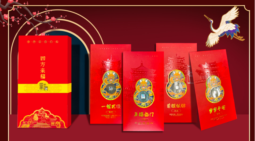 这次我们为大家带来一件由《国家宝藏》精品推荐的《四方来福》古币吉祥红包。