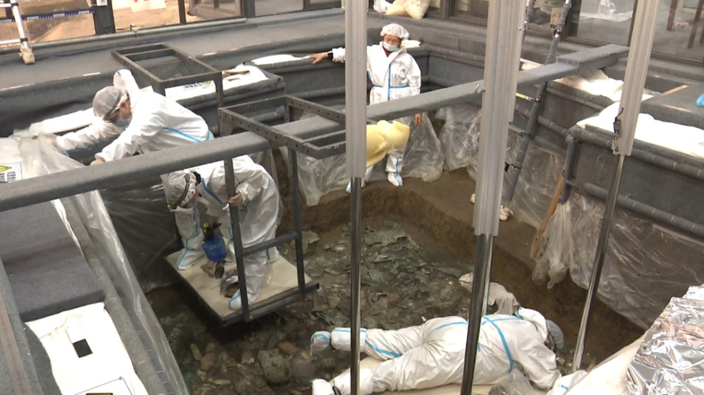 随着发掘工作推进,现在已知,8号坑的象牙数量,同样也最多。考古工作队介绍,依照现有的埋藏逻辑来看,8号坑大型青铜器密布,而且越向下青铜器越大,提取难度也大,田野发掘可能要持续到明年七月。