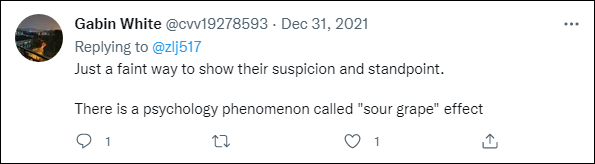 有网民评论道:“这只是一种表达他们怀疑和立场的虚弱方式。有一种心理现象叫做‘酸葡萄’效应。”