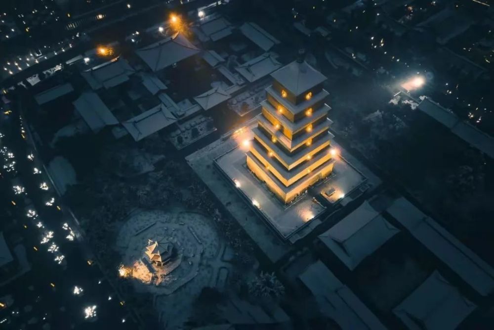 年夜里的西安城呀,可不就是那样一种情景,我们虽然身处肆虐的新冠疫情当中,但我们是乐观的,我们点亮了钟楼、点亮了鼓楼、点亮了大雁塔、点亮了小雁塔,还有巍峨的古城墙,都点亮起来了,西安城无处灯不亮,无处灯不灿,蓦然间,荐福寺大院里的那口古钟被敲响了。关中八景的“雁塔钟声”,说的就是这口钟了,从天下人称颂的大唐时起,开启新年的那一刻,西安人期待的,就是聆听那口钟豪迈雄浑的鸣响了。