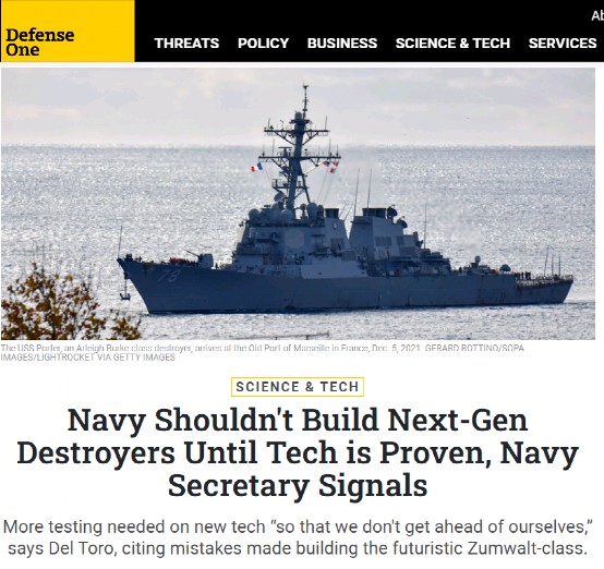 或许是迫于外界浪潮般的质疑,美国海军的“一把手”——海军部长卡洛斯·德尔·托罗近日宣布,在相关技术得到验证之前,美国海军不应该建造下一代驱逐舰。