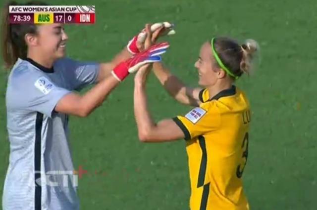 澳大利亚女足世界排名第11位,印尼的世界排名是第94位,2队的差距非常明显,因此从比赛开始第1分钟,比赛就变成了一边倒。整个上半场比赛,澳大利亚女足疯狂射门18次,12次命中球门范围内,打入9球,山姆-克尔从第9分钟开始进球,随即澳大利亚队在11、14、17、24、26、34、26、39分钟一共打入9球。