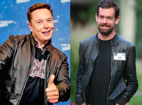 首富马斯克和推特创始人杰克·多西,不仅在事业上有交集(马斯克刚刚收购推特,多西也混币圈),还都走过潮男路线,皮衣穿得飞起。