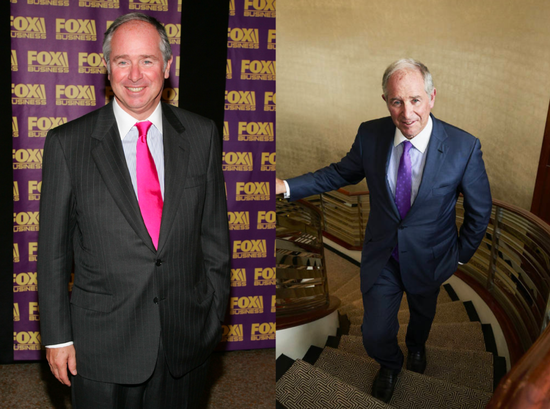 私募之王、黑石集团创始人苏世民,也是这种非黑即蓝的“金融同行”调调(只不过在领带颜色的选择上比较“调皮”)↓