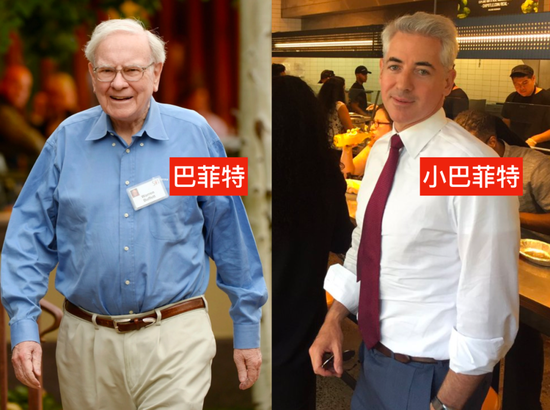 衬衣显然是老派富豪最常规的选择,老哥巴菲特和追随老哥的“小巴菲特”比尔·阿克曼的着装,就很有代表性↓