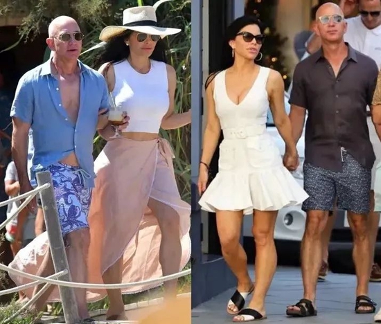 贝佐斯前阵子出门遛个弯儿都背心不离身,还和桑切斯来了个插兜秀恩爱~
