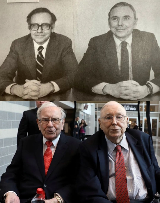 对于老派富豪来说,审美是有惯性的。像巴菲特和他的老伙计芒格,合影从黑白到彩色,中间过去几十年,穿衣画风却是一点没变。