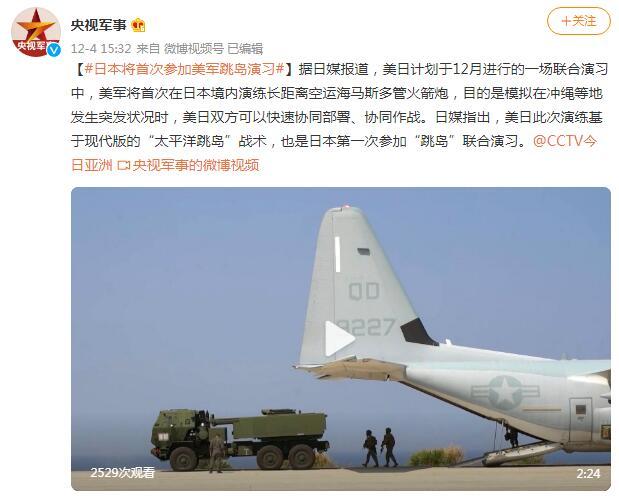 据日媒报道,美日计划于12月进行的一场联合演习中,美军将首次在日本境内演练长距离空运海马斯多管火箭炮,目的是模拟在冲绳等地发生突发状况时,美日双方可以快速协同部署、协同作战。日媒指出,美日此次演练基于现代版的“太平洋跳岛”战术,也是日本第一次参加“跳岛”联合演习。