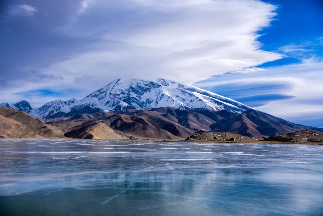 此外,慕士塔格山和脚下的卡拉库里湖仿佛天作之合,天空如洗,湖水如镜,倒映着慕士塔格山、公格尔山以及公格尔九别山这一连串的雪山。