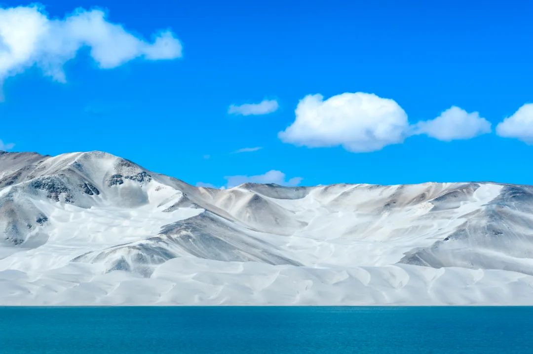 沿着帕米尔高原上的314国道继续驱车前行,有一处美景不可不提,那就是“沙山倒影”——白沙山和流沙河。