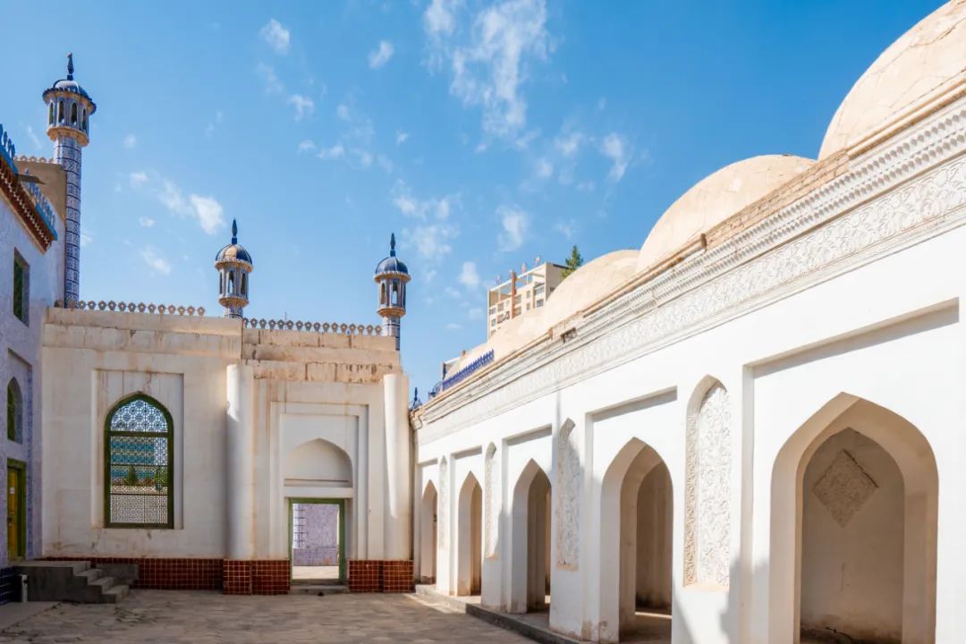 艾提尕尔清真寺位于喀什老城区中心,是全国规模最大的清真寺之一。