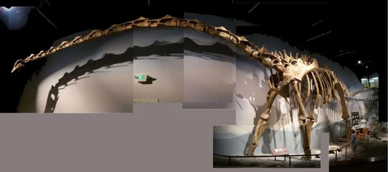 博物馆中超龙化石,右下角的游客可以作为体型参考 图片来源:ZachTirrell from Plymouth, USA