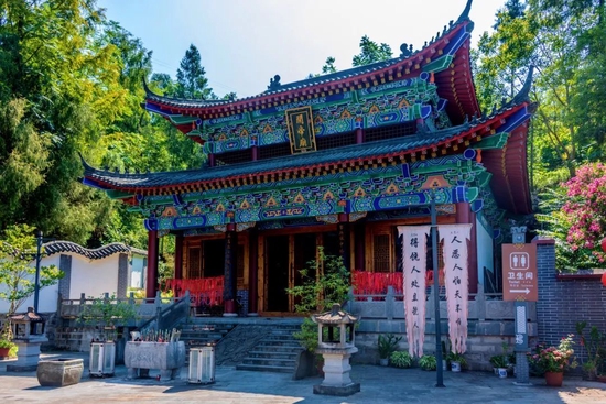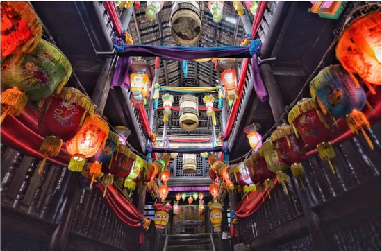 从烟管的一角透过天井可望见回龙阁,形成一幅景中景的奇观。