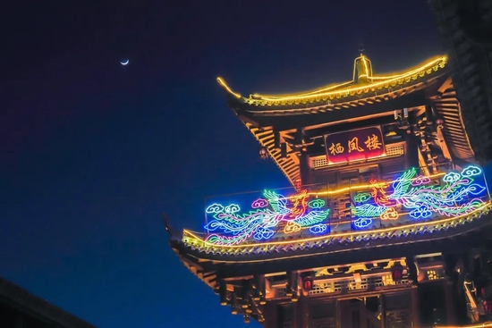 一座飞凤桥又将它们重新连接起来,跨越现代和古代只需要这一座桥的距离。