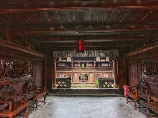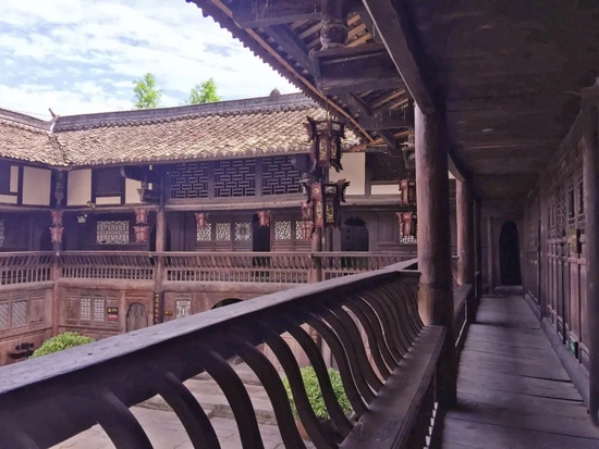 天井、廊前长达7米的青石铺就的走廊,青砖素瓦,雕梁画栋。
