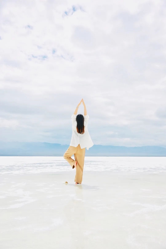 可以在盐湖里踩水游玩,穿着鲜艳的衣服打卡拍照,再和被称为奢侈的大地艺术之茶卡盐雕一起合影。