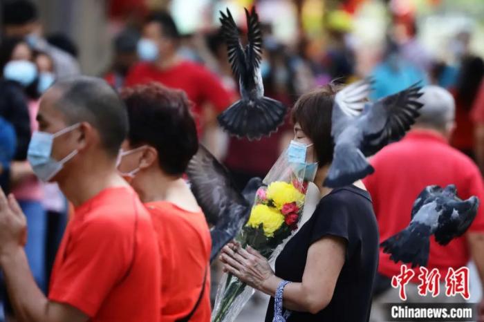 新加坡民众来到寺庙向观音菩萨祈福。NurPhoto/视觉中国 供图