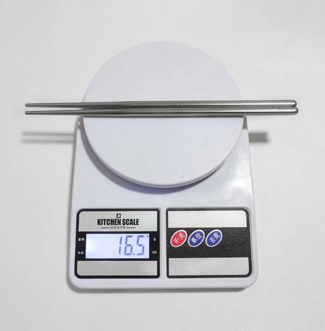 我们这套钛筷用到的原料,是仅次于医·用级别的TA1级钛,而且是实打实的纯钛*。(*纯钛要求钛含量在98%以上)