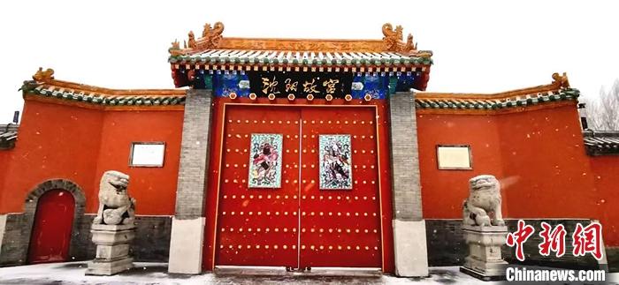 1月13日,沈阳故宫悬挂门神迎接农历新年的到来,再现清宫新春习俗。图为悬挂有“将军”门神的沈阳故宫东大门。