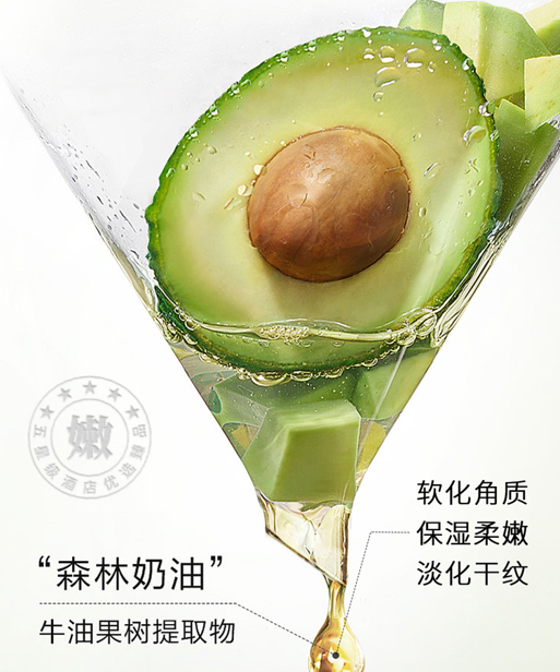 护手霜中添加了被称为“森林奶油”的牛油果成分,可以提高肌肤的光泽度,深透肌底,让肌肤变得更白更嫩更滑。