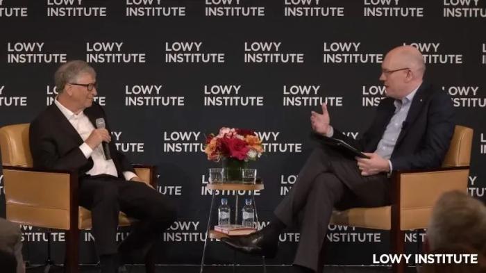 当地时间1月23日,比尔·盖茨在澳大利亚智库洛伊研究所举行的一场对话会上,与洛伊研究所执行理事长迈克·富利洛夫对谈全球挑战时,作出以上表述。