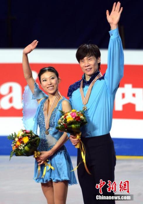 图片2015年花滑世锦赛双人滑比赛中,庞清/佟健摘得铜牌。 中新社发 申海 摄