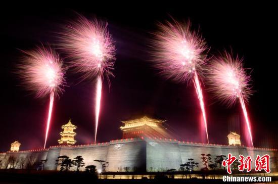 1月31日晚,山西省太原市太原古县城上演大型烟花秀,为古城增添一道美丽景观。太原古县城是张艺谋执导电影《满江红》的拍摄地,吸引广大游客关注。