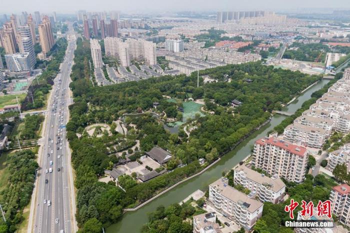 航拍苏州昆山花桥花溪公园。 泱波 摄