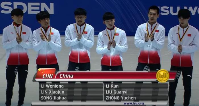 资料图:短道速滑世界杯德累斯顿站男子5000米接力中国队夺冠。来源:中国冰雪微信公众号。