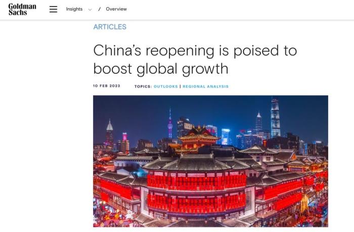 中新网2月13日电 “中国优化疫情防控措施不仅会推动中国的经济复苏,还将促进全球的经济增长。”高盛集团近日在其官方网站发表的文章中,如是说。