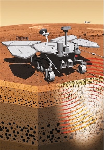祝融号火星车雷达探测示意图。