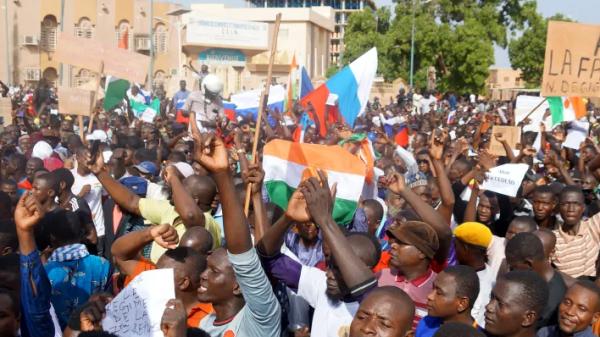 7月26日上午,尼日尔总统卫队突然发动政变控制总统官邸,并将总统巴祖姆扣押。30日,数千名支持政变的示威者聚集在首都尼亚美的法国大使馆前。示威者高呼着“赶走法国”的口号,挥舞着俄罗斯国旗。其中一些示威者表示,传统盟友法国未能保护尼日尔免受“圣战分子”的袭击,而俄罗斯会是一个更强大的盟友。