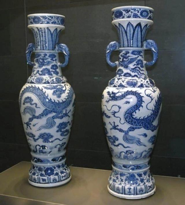 大维德花瓶The David Vases(元至正青花龙纹大瓶),可能是现存最重要的青花瓷器物,其顶部附近的铭文表明它们的年代可以追溯到1351年。1935年,珀西瓦尔·大维德爵士分别从两个收藏家手中买下它们,令这对花瓶重聚。