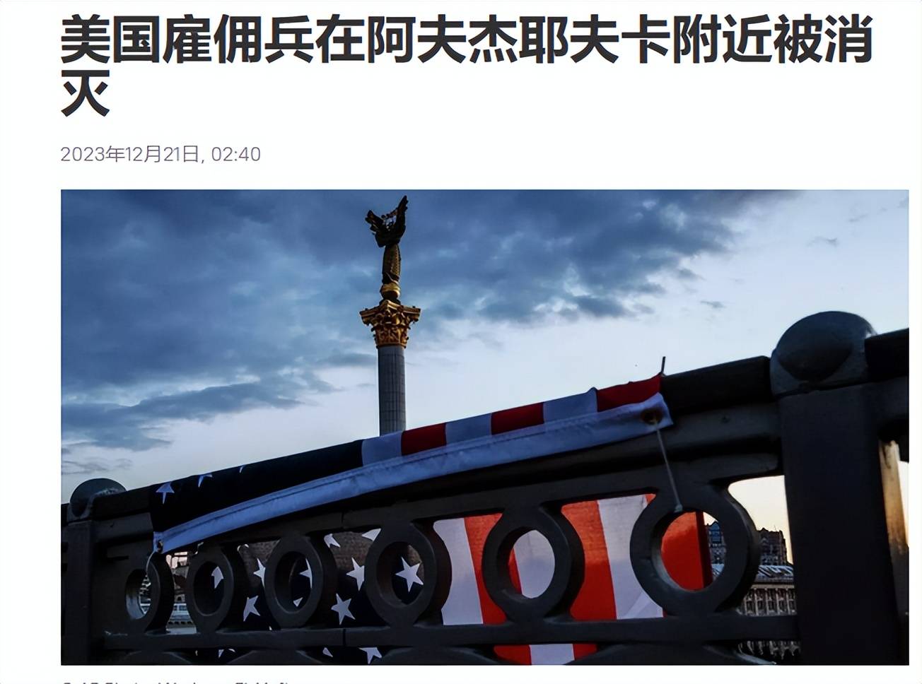 21日,俄罗斯卫星通讯社报道称俄军在前线地区再度击毙西方军队的士官,资料显示这名叫做伊森·赫特维克的军官来自加利福尼亚,所使用的是身份是私营军事公司“三叉戟防御计划”的教官,加入名为“猎魔人”的特种部队参战。俄军还找到了他在网络上使用的社交账号,显示其多次对俄军发表嘲讽性言论,但他同时拒绝承认自己是美国人。稍晚些时候,这名士兵的家属承认伊森已经死亡,并证实他在今年年中来到乌克兰。