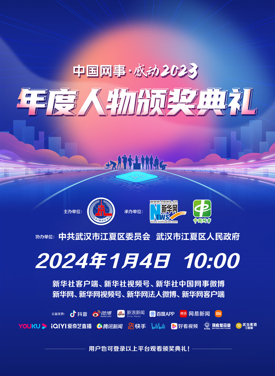 “中国网事·感动2023”年度人物颁奖典礼将于1月4日全网播出。届时,根据公众投票和专家评审打分加权排名得出的2023年度十大网络感动人物结果将向大众公布。