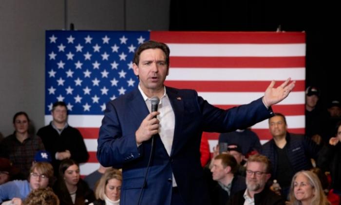 当地时间2024年1月19日,美国新罕布什尔州纳舒厄,美国共和党总统候选人、佛罗里达州州长德桑蒂斯参加竞选活动。图/IC photo