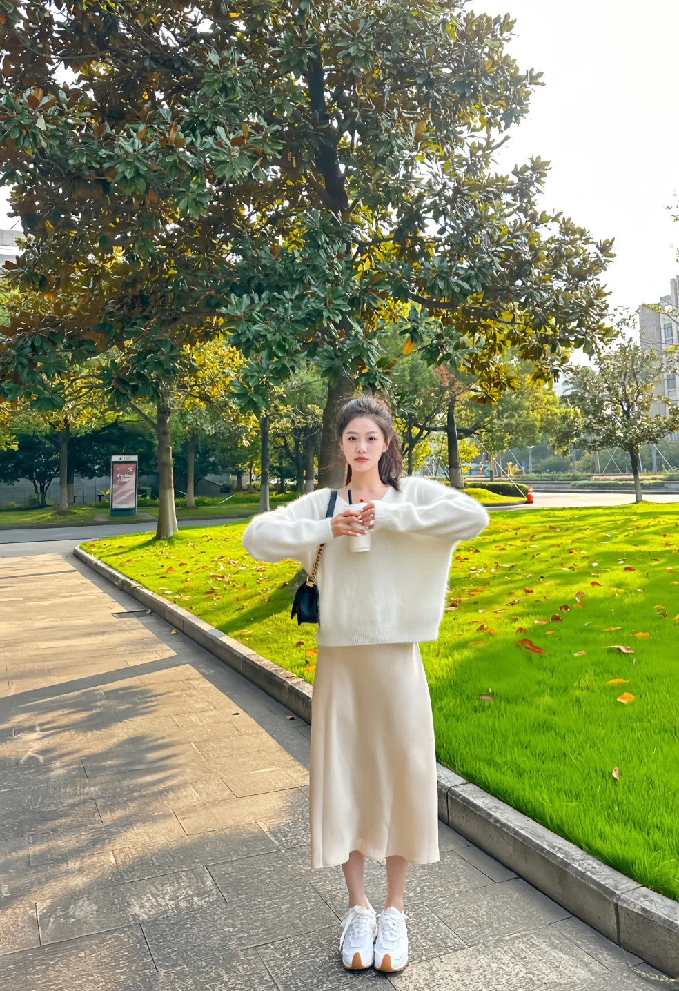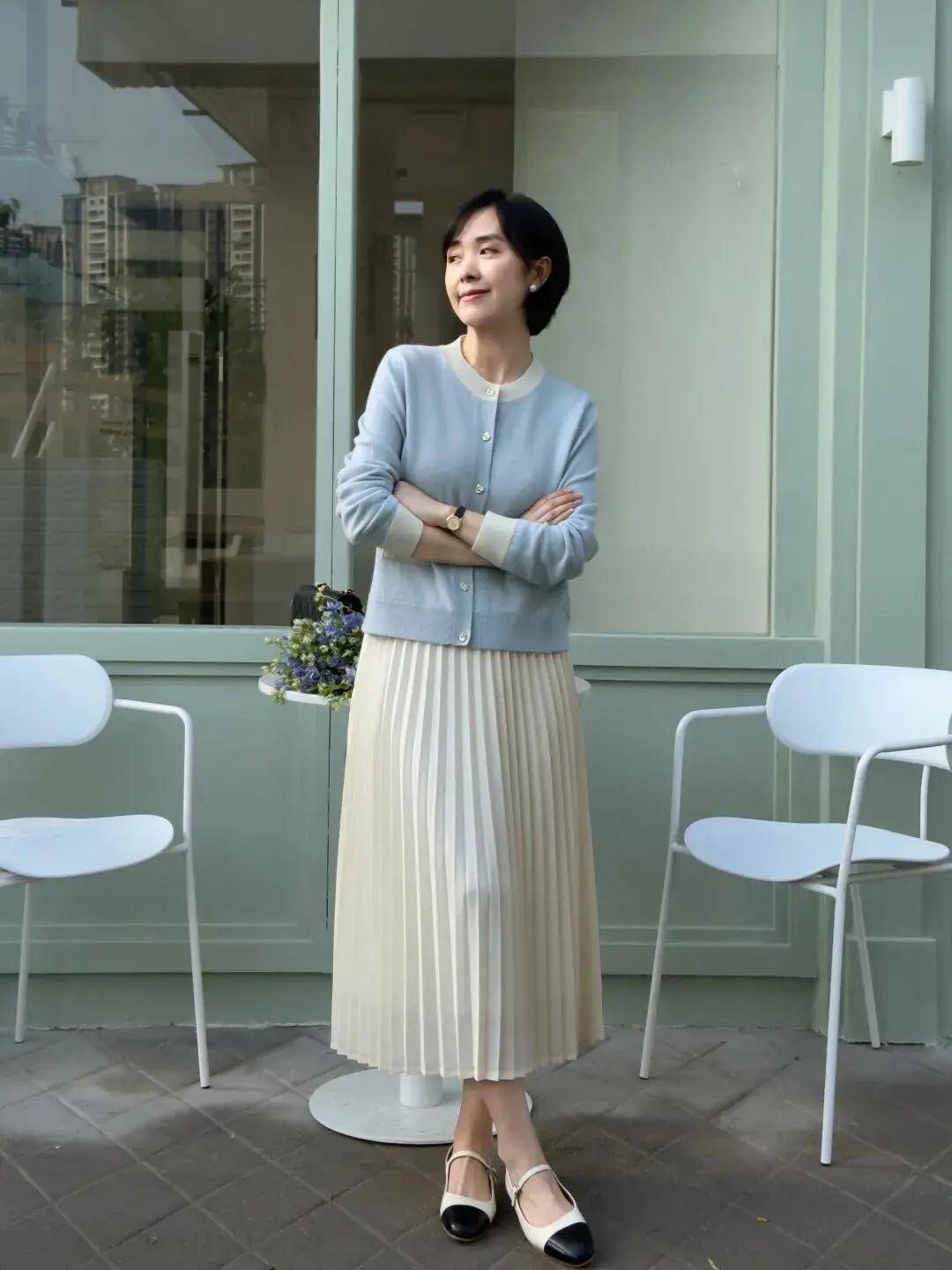针织衫和百褶裙的组合搭配也是春季比较常见的一种穿搭方式了,保暖舒适,更加的简约大气,可以轻松穿出满满的温柔感和时尚感,而且根据款式颜色以及搭配方式的不同,几乎可以满足任何年龄段的穿搭,包容性真的是没得说的。