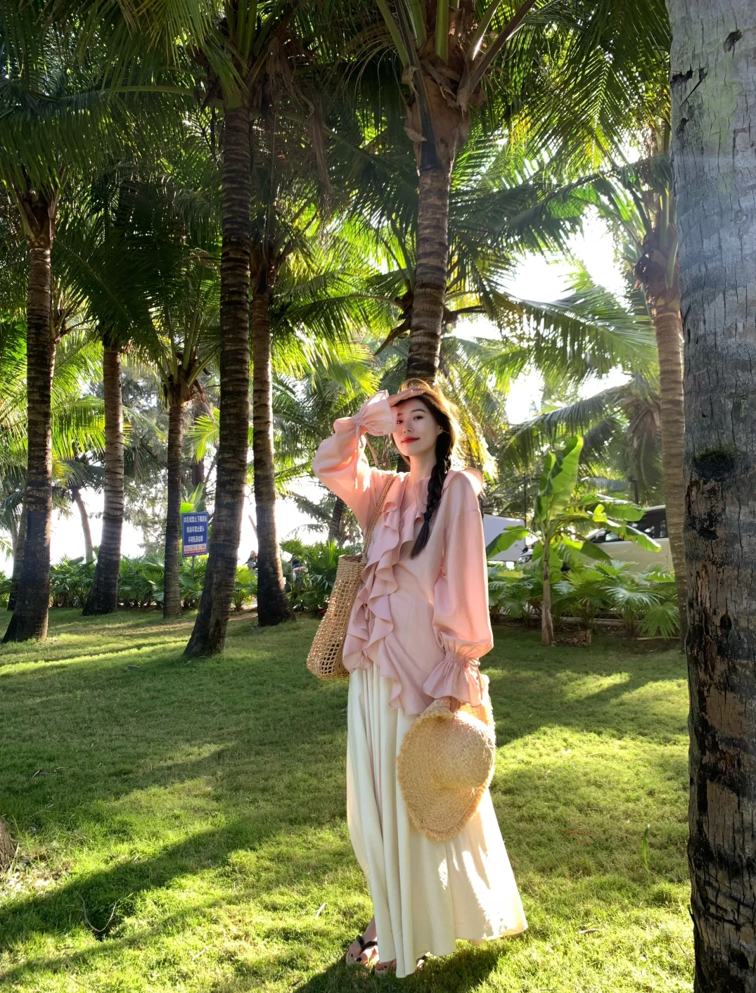 除了像是常规不易出错的黑白灰咖之外,我们大家还可以选择粉色,不管是上衣、还是裙子都可以~