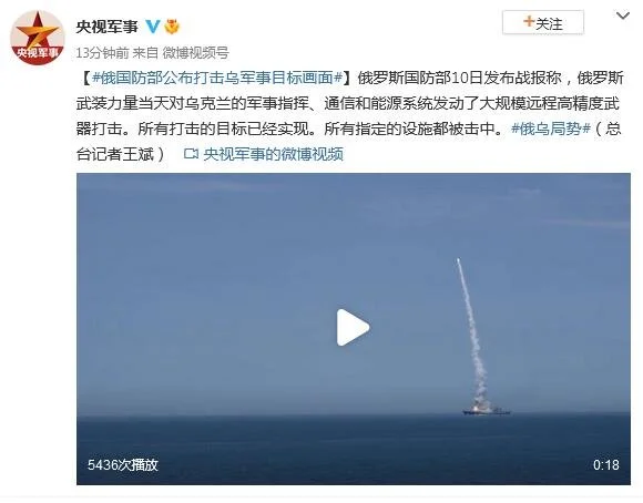 俄罗斯国防部10日发布战报称,俄罗斯武装力量当天对乌克兰的军事指挥、通信和能源系统发动了大规模远程高精度武器打击。所有打击的目标已经实现。所有指定的设施都被击中。