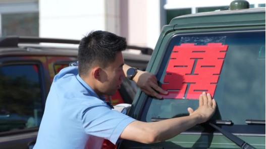 军车组成的迎亲车队驶向幸福