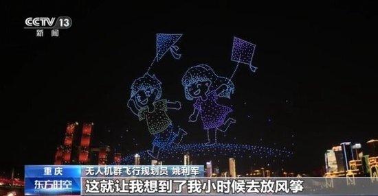 无人机群飞行规划员 姚利军:今天晚上有两个小孩在放风筝的图案,这就让我想到了我小时候去放风筝,童年的这种乐趣在成年的时候以科技的形式展现了出来,这种感觉很奇妙,也希望传达给更多的人,大家在看无人机表演之后能够感觉更开心、更快乐。
