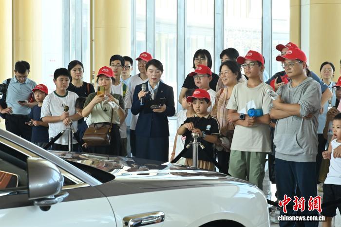 8月24日,安徽科创产业研学游——“AI汽车大探索”活动走进合肥。图为青少年在尊界用户体验中心参观。记者 张强 摄