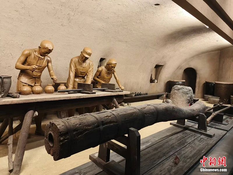 冉庄军民造的“榆木大炮”。冉庄地道战纪念馆 供图