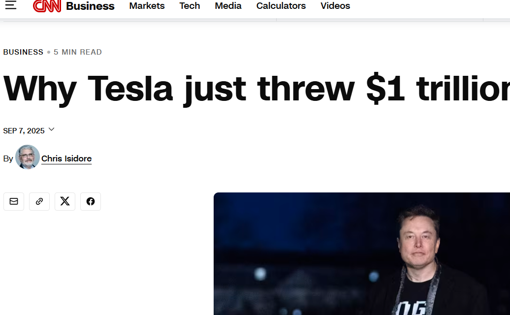 【环球网科技综合报道】9月9日消息,据CNN报道,特斯拉董事会日前抛出了一颗“重磅炸弹”——一份可能让首席执行官埃隆·马斯克在未来十年内额外获得4.237亿股特斯拉股票的新薪酬方案,这一方案若全部达成,股票价值将接近1万亿美元,瞬间在商业界和投资圈掀起了轩然大波。