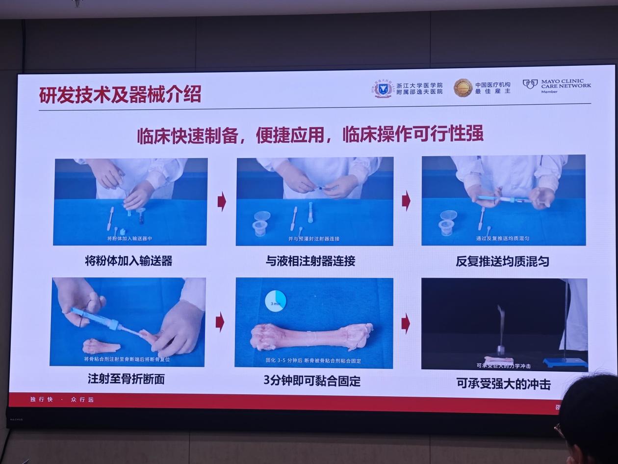 9月9日,记者从浙江大学医学院附属邵逸夫医院获悉(以下简称“浙大邵逸夫医院”),该院骨科范顺武教授、林贤丰副主任医师团队从牡蛎水中粘附现象获取灵感,成功研发出全球首款能够在人体血液环境中实现即时强效黏合的骨胶水材料——“骨02”碎骨黏。这一创新生物材料,有望减少或替代传统金属内固定物的使用。