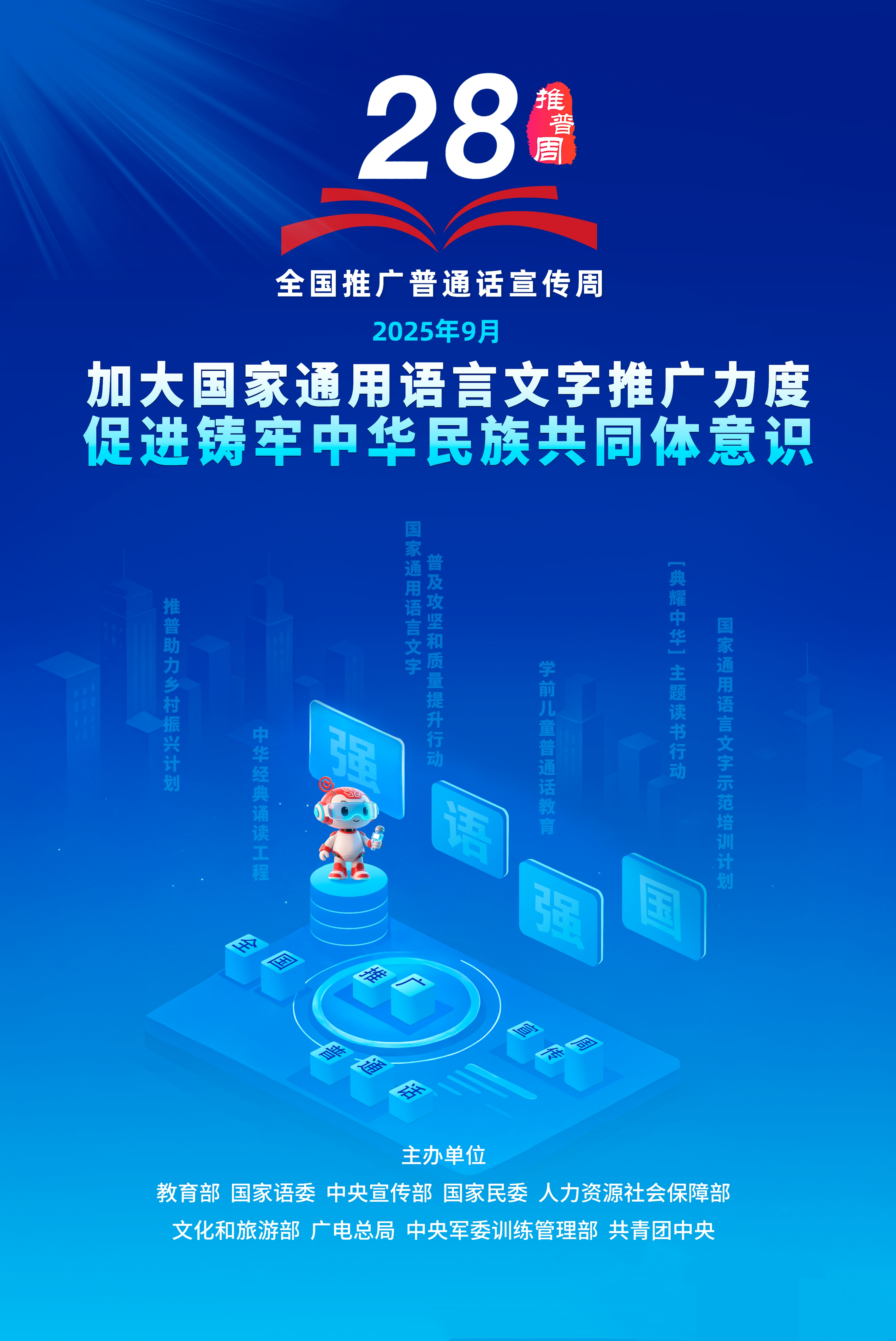 经国务院批准,自1998年起,每年9月第三周为全国推广普通话宣传周(简称“推普周”),今年是第28届推普周,活动海报也已同期发布。