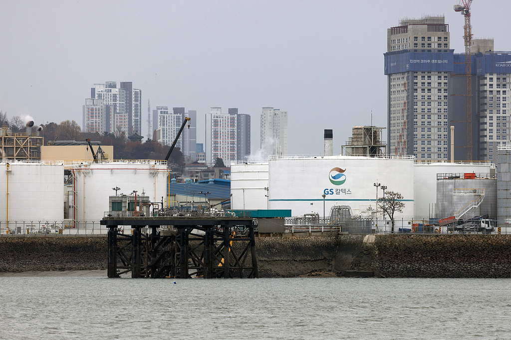 韩国石化企业GS加德士位于仁川港的石油储备罐。(视觉中国)