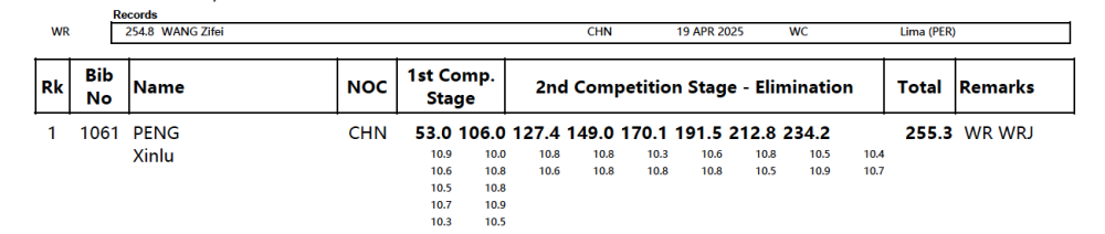 新华社宁波9月14日电 在刚刚进行的射击世界杯宁波站女子10米气步枪决赛中,中国16岁小将彭鑫露以255.3环打破世界纪录、世界青年纪录。此前254.8环的世界纪录是另一名中国小将王子菲在今年4月份的世界杯利马站上创造的。