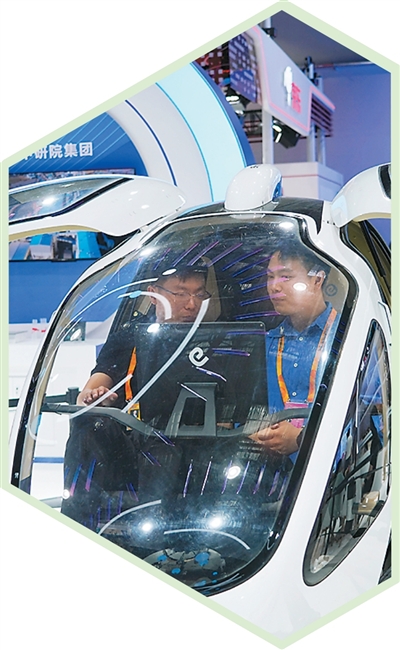 服贸会上展出的一款可载人飞行器。新华社记者 谢 晗摄