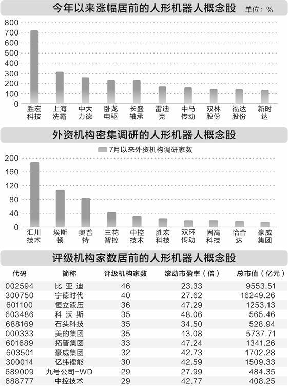 据证券时报·数据宝统计,A股中人形机器人概念股今年以来行情表现亮眼,110只概念股年内平均上涨67.63%,18股最新收盘价较去年年末实现翻倍,胜宏科技、上海洗霸、中大力德累计涨幅居前,分别达到727.75%、317.14%、258.64%。